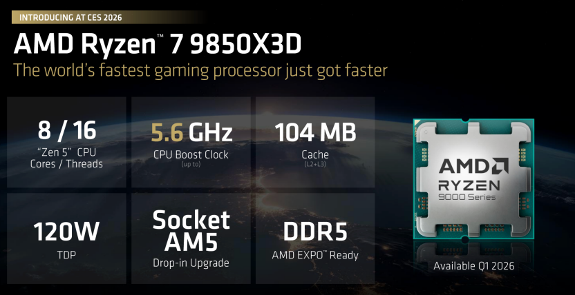 在AI的喧嚣之外,AMD也没有忘记它的基本盘。AMD 锐龙7 9850X3D,既是对“更强游戏 CPU”名号的卫冕,也是对物理极限的一次挑战。