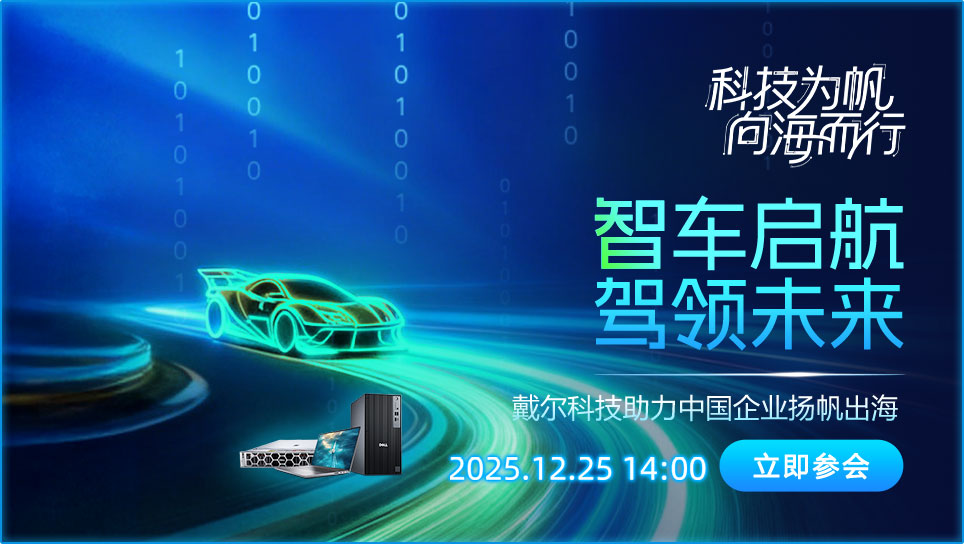 戴尔科技集团诚邀您参与 12月25日 14:00在线上举办的 "科技为帆 向海而行:智车启航 驾领未来" 网络研讨会。本期研讨会将深度剖析中国汽车出海的实战经验与数字化解决方案,助力企业构建可持续的全球竞争力。