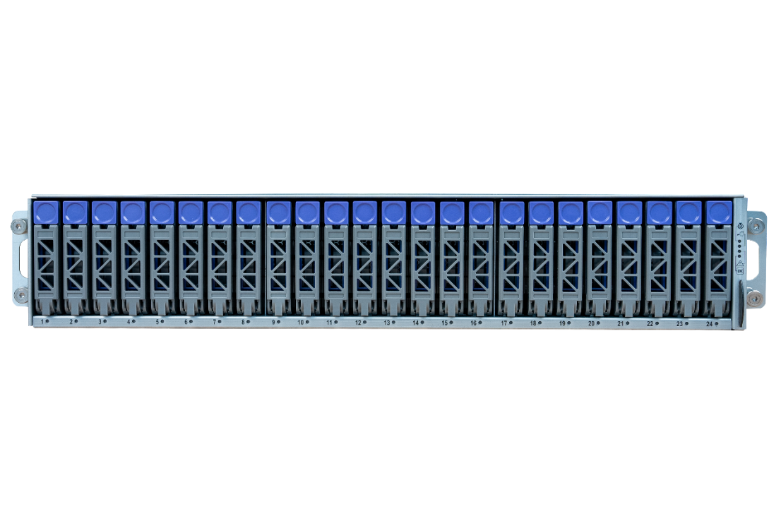 OpenFlex™ Data24 4000系列专为AI、HPC和云环境的高强度工作负载而打造,采用2U 24-盘位设计,最高可支持1474.56TB低延迟双端口SSD。该平台提供接近直连存储(DAS)的性能,并实现了存储和网络之间的带宽匹配,避免了过度订阅,从而减少基础架构过度配置需求,最大化价值与效率。它还提供灵活的连接选项,包括基于融合以太网的RDMA(RoCE)或TCP连接。